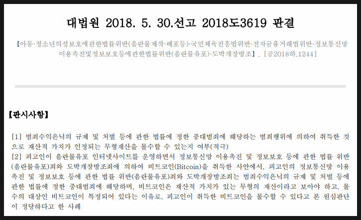 2021년에 비트코인 1개가 1억원을 돌파하네 마네 소리도 나왔었는데 문제는 비트코인은 눈에 보이지 않습니다. 말 그대로 가상세계에 존재하는 화폐인데 전 세계에 있는 가상화폐 거래소를 통해 돈을 주고 매매가 가능하다는것입니다. 그래서 이것이 재산으로 분류할 수는 있지 않나 싶은데 가정법원의 사실조회나 금융거래 정보에서는 나오지 않는 애매한 상황이 생겼습니다. 가상화폐 관련된 법도 아직 생기기 전이라서 한동안 이혼하면서 가상화폐가 재산분할의 대상인지 논란이 되었습니다. 그러나, 2018. 5. 30선고 2018도3619 판결에 의하면 대법원은 가상화폐를 재산적 가치가 존재하는 무형의 자산이라고 명시적으로 인정하였기 때문에 이혼소송 과정에서 재산 분할의 대상이 되는 재산의 개념에 포함됩니다.